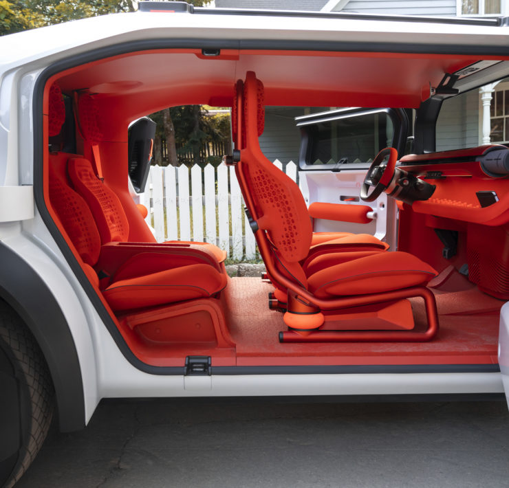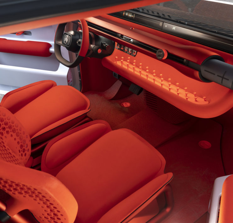 Avec ses formes courbes et anguleuses, la Citroën Oli affiche une esthétique française unique en son genre. Ses panneaux extérieurs interchangeables offrent aux conducteurs la possibilité de personnaliser leur véhicule selon leur style et leurs préférences. L’intérieur n’est pas en reste, avec une disposition symétrique qui abrite les éléments essentiels tels que le volant, les interrupteurs, le support pour smartphone et les prises USB. Les sièges, quant à eux, sont fabriqués à partir d’un matériau en maille imprimé en 3D, réduisant ainsi le nombre de pièces et favorisant le recyclage.