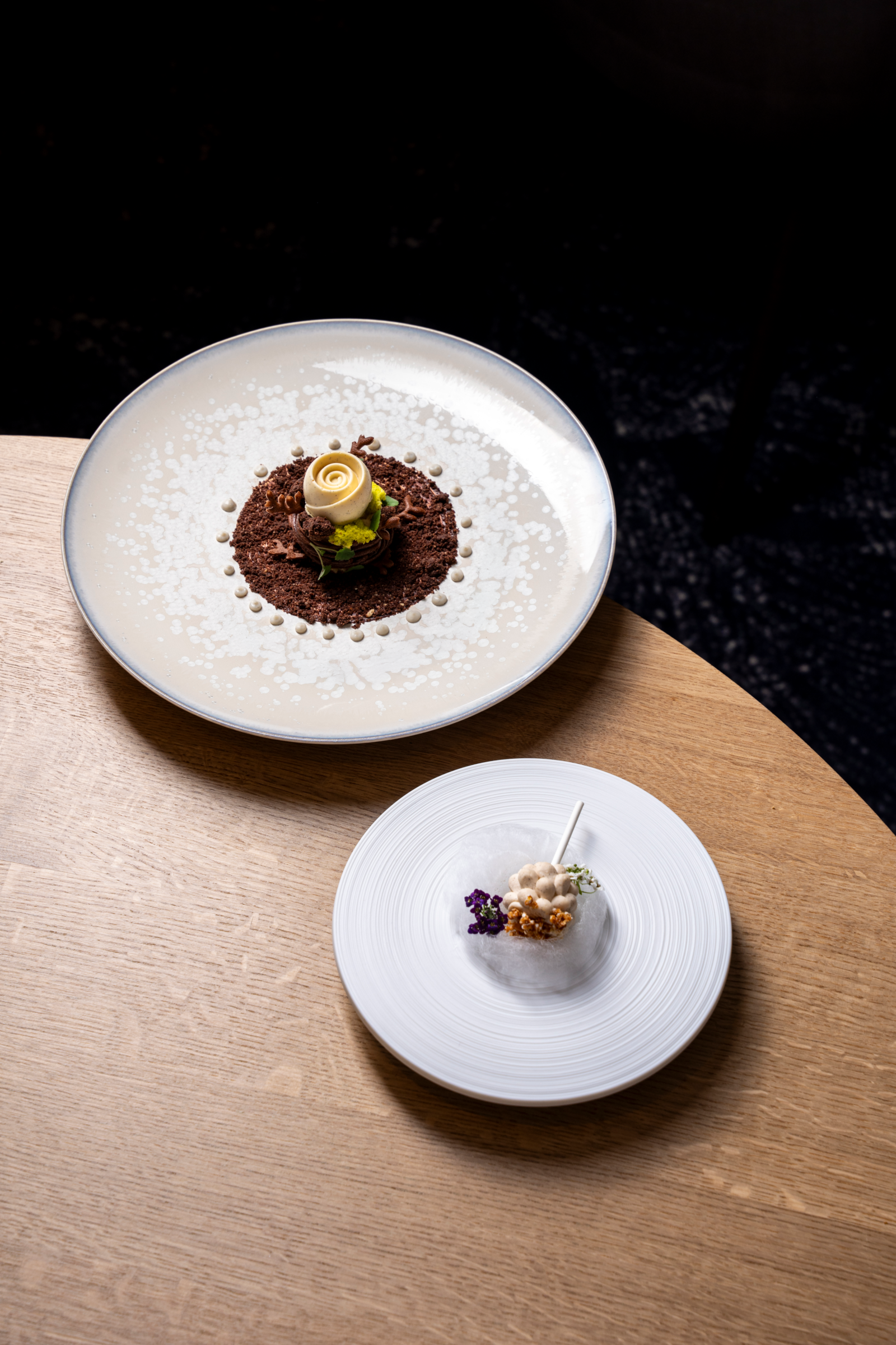 Michaël Perrichon, au Mandarin Oriental Geneva, rend hommage à sa région natale avec le « Mâtru », un clin d’œil au petit enfant en patois stéphanois. Biscuit clafoutis aux pommes et amandes, compotée de rhubarbe et groseille, mousse yaourt-vanille : une recette gorgée de souvenirs de vergers familiaux.