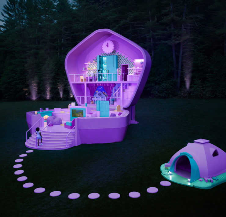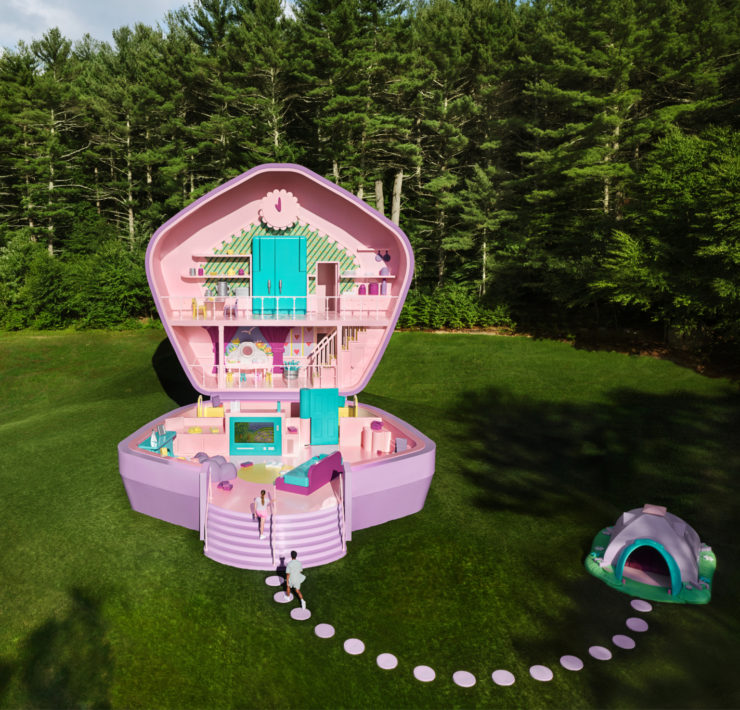 Situé dans la ville pittoresque de Littleton, dans le Massachusetts, le coffret de 13 mètres de haut donne une autre dimension à l’expression « petit mais costaud ». Les voyageur.euse.s peuvent demander à réserver l’un des 3 séjours de 1 nuit pour 4 personnes, du 12 au 14 septembre, au prix de USD 89 par personne : un clin d’œil aux débuts de Polly Pocket en 1989. En entrant dans l’univers de Polly Pocket, les voyageur.euse.s peuvent :
