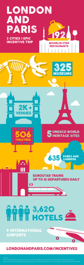 Ces itinéraires ont été pensés pour montrer à quel point il est facile de profiter des deux villes lors d’un voyage incentive extraordinaire. L’offre inclut en outre un partenariat officiel avec Eurostar pour une expérience de voyage optimisée (avec un trajet d’à peine plus de 2 heures) entre les deux destinations.
