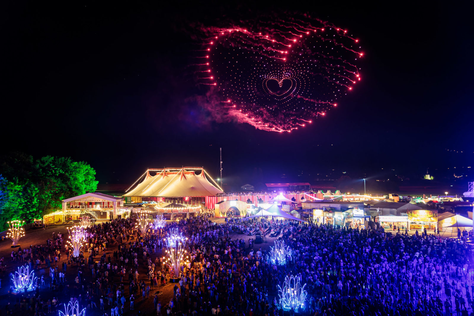 Le traditionnel feu d’artifice a été remplacé par un spectacle de drones pyrotechniques, première suisse orchestrée par Groupe F. Hélas, depuis la Grande Scène, la terrasse Migros bouchait l’horizon : la foule a hué, allumé ses smartphones et réclamé le « vrai feu ». Les organisateurs parlent d’une « erreur de jeunesse » et promettent d’« analyser » la visibilité avant 2025.