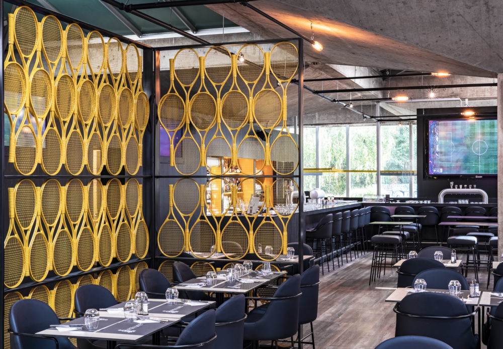 Adresse emblématique genevoise prisée par les supporters de hockey, le pub-restaurant des Vernets affiche une nouvelle identité pour cette rentrée sportive. Après seulement quelques semaines de rénovation, le Prime’s Fine Food & Sports Bar a dévoilé ses nouveaux atours miseptembre : le changement de décor a été piloté par Stanislas de Boissieu qui s’est inspiré de ses précédentes expériences professionnelles à Dubaï. Le studio et duo père-fils genevois Colucci & Colucci Design, a apporté ses compétences pour le design complet du lieu : du concept au suivi de réalisation du projet, sans oublier la création des éléments et du mobilier sur-mesure. Une métamorphose qui s’est opérée autour d’un concept faisant la part belle à des objets du domaine du sport détournés de leur utilité originelle.