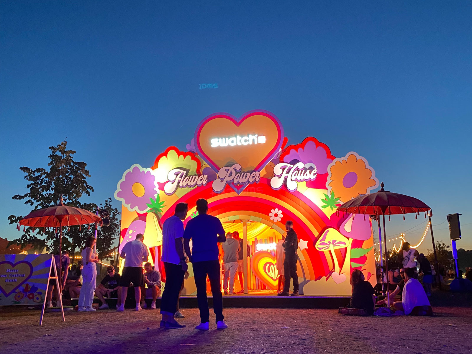 Réalisée dans un style purement « flower power » digne des sixties et seventies (années 60 et 70) que les hippies ont propulsé sur le devant de la scène, la Swatch Flower Power House est la maison de l’amour où tous les amoureux se retrouvent au sein du festival. Que ce soit de plein jour ou une fois la nuit tombée, impossible de passer à côté du stand de Swatch. Outre la bonne humeur et l’amour qui s’en dégagent, vous pourrez découvrir les derniers modèles Swatch et repartir avec l’un des modèles présentés. Lorsque l’on se rend dans un festival, on cherche évidemment à écouter de la bonne musique (si possible de nos artistes favoris), à manger de la bonne nourriture mais on cherche aussi et surtout à vivre de belles expériences. Et la Swatch Flower Power House est l’endroit idéal pour cela.