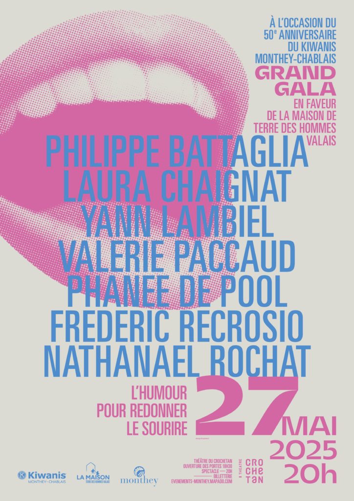 À l’occasion de ses 50 ans, le Kiwanis Club Monthey s’associe à une pléiade d’artistes suisses romands pour une soirée caritative d’exception au Théâtre du Crochetan, au profit de la Maison de Terre des hommes Valais. Entre sketchs, musique et générosité, le spectacle promet d’émouvoir autant qu’il divertira.