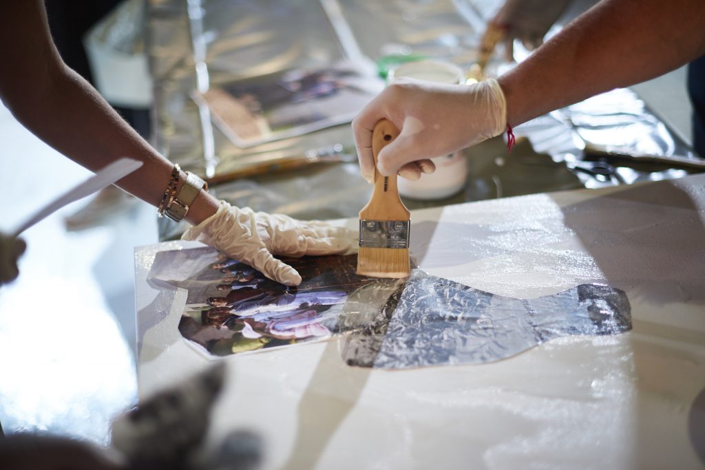 Une fois que j’ai accueilli les participants, je leur fais une présentation sur l’artiste que l’on va traiter le jour même. Puis je leur donne toutes les informations techniques pour réaliser leur « œuvre », je leur fournis les outils et généralement une toile ou d’autres matériaux et les laisse travailler tout en les aidant en fonction de leur demande. A la fin, nous accrochons au mur toutes les œuvres réalisées pour les admirer, comme dans une exposition d’art. Parfois, nous ouvrons une bouteille et prenons l’apéro ensuite.